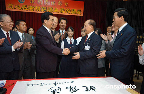十九日下午,国家主席胡锦涛探望了澳门劳工子弟学校的师生,并欣然为学校写下了“胡锦涛”三个字的墨宝。作者:梁永强