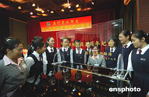 十九日下午,国家主席胡锦涛参观澳门劳工子弟学校,并向学校赠送了一台钢琴,当胡主席离开后,师生们迫不及待地用新钢琴弹起了“我的祖国”等名曲。作者:梁永强