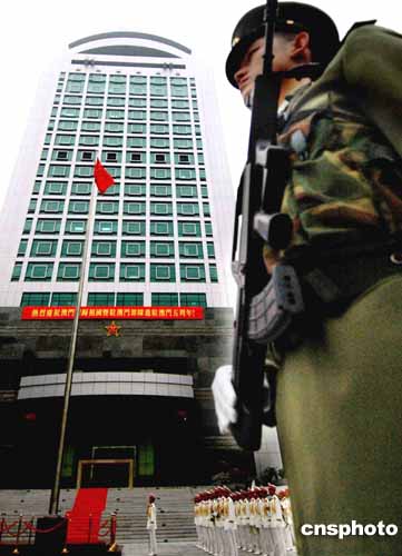 解放军驻澳门部队20日上午庄严举行升旗仪式,庆祝澳门回归祖国五周年。作者:宋吉河