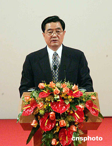 九时五十二分许,胡锦涛在如潮的掌声中发表重要讲话。