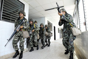 整个演习分为两个阶段进行。第一个阶段是中级和高级军官在指挥所里用电脑进行战争模拟,完全是虚拟世界的真实战争;第二个阶段则是实兵演习,主要是演练特种部队如何应对渗入后方的敌人。