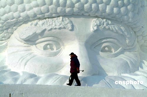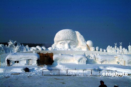 | 2004年12月22日,长春净月潭国家森林公园的巨型“圣诞老人”。当日,经过长春净月潭国家森林公园的上百名工作人员的日夜忙碌、35位哈尔滨专业冰雕师的精雕细琢,世界最大单体雪雕作品--“圣诞老人”在吉林长春净月潭国家森林公园冰雪乐园全部竣工。据悉,该“圣诞老人”现体量长80米、高17米、厚25米,用雪量7000立方米,工程量和体积为世界之最。24日,“2005届中国长春冰雪旅游节暨净月潭瓦萨国际越野滑雪节”将于长春开幕。作者:樊甲山