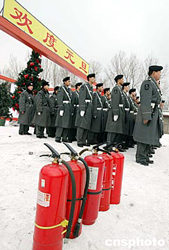 十二月二十三日,北京冬季书市组委会与东城警方联合举行消防演练,此活动主要在于加强即将在地坛举办的冬季书市的安全防范以杜绝火灾。中新社记者:任海霞