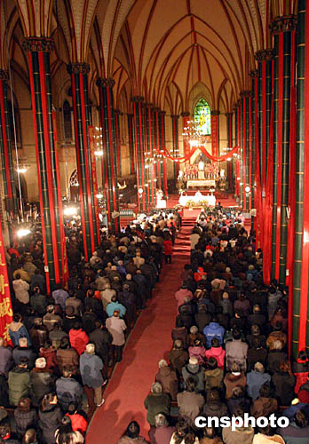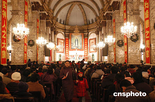 北京众多天主教信众来到天主教宣武门教堂参加圣诞弥撒。中新社记者:邹宪