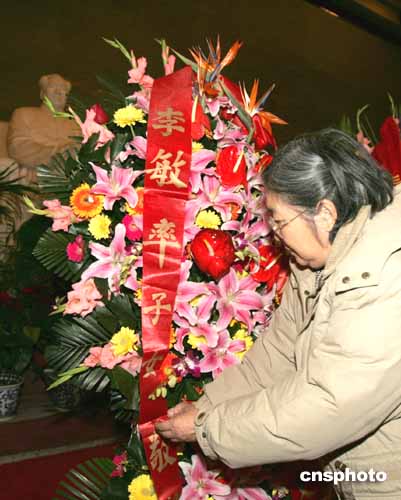 十二月二十六日毛泽东诞辰一百一十一周年之际,毛泽东的女儿李敏(母亲为贺子珍)到北京毛主席纪念堂敬献花篮。作者:任晨鸣
