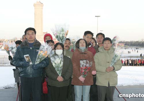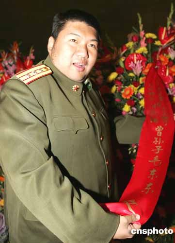 毛泽东的孙子毛新宇代表父母、妻子和2003年12月26日出生的儿子毛东东(毛泽东的曾孙)到北京毛主席纪念堂敬献花篮。作者:任晨鸣