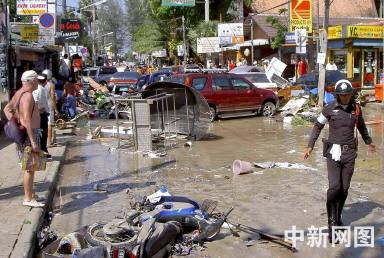 26日印尼苏门达腊岛北部发生的强烈地震在东南亚、南亚海域引发海啸。高达近10米的巨浪袭击了印尼、斯里兰卡、泰国等国沿海地区。图为泰国普吉岛遭海啸袭击,现场一片狼籍。