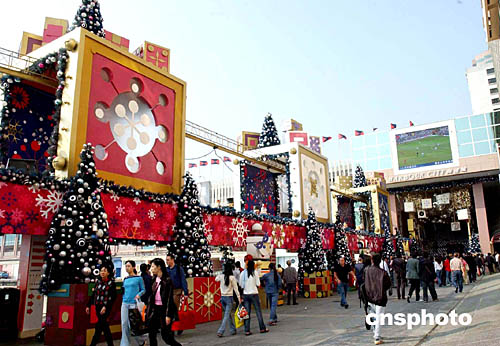 中新社香港十二月二十六日电 一连三日的圣诞假期昨日展开,延续平安夜的节日气氛,市民与游客尽情消费,人流挤爆商场街道,零售市道大收旺场。
