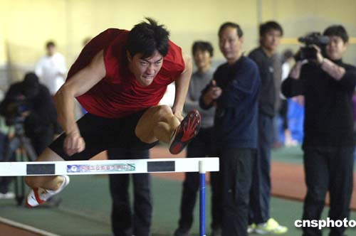 在中国田径队的公开训练日内,刘翔的训练成为媒体关注的焦点。