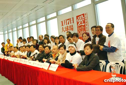 由香港演艺界发起于1月7日举行的《爱心无国界》筹款表演,定于香港政府大球场举行,1月1日,演艺界及多个团体联合在香港国际金融中心举行发布会,一众出席嘉宾手拉手以示赈灾决心。作者:洪少葵