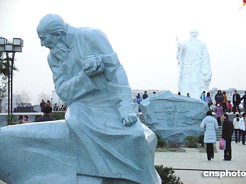 1月1日,值此中国画宗师齐白石诞辰141周年纪念日,湘潭市民纷纷前往白石公园瞻仰其雕像,缅怀一代艺术大师。公园内5座浅蓝雕塑将白石老人从最初的放牛娃到刻苦学艺并最终获得国际和平奖的人生经历勾勒出来。作者:刘双双