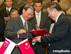 吴仪、李显龙出席两国多个合作协议签字仪式。中新社记者:满会乔