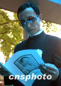 五月十五日上午,因车祸身亡的著名演员牛振华追悼会在北京八宝山举行,香港演员万梓良为其送行。中新社记者:张宇