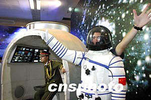 五月十五日,二零零四年全国科技活动周暨北京科技周在北京展览馆隆重举行,“神舟五号”展台吸引了众多普通人一圆航天梦。作者:徐曦弋