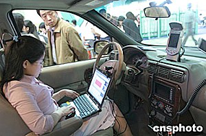 五月中旬,在北京科技周展览会上,一种可在移动的汽车上完成全套办公业务的“车载办公室”向观众亮相。“车载办公室”有无线网络、卫星导航、传真打印等各种配置。中新社记者:史利