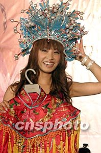 五月十七日,华人乐坛冠军流行小天后蔡依林在北京举行全新专辑《城堡》热卖的庆功大会。蔡依林在现场戴上凤冠,展示凤袍来为自己打气。作者:高远