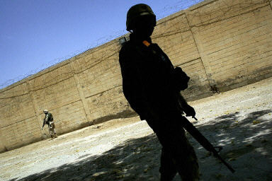 5月17日,美军士兵在巴格达西郊的阿布格莱布监狱内值勤。