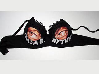 这次新的艺术品展览包括25件胸罩,比尔佐表示,这些当中有一个是献给库土索夫的,另一个是描述普京的眼睛,前苏联总统勃列日涅夫 的眉毛, 赫鲁晓夫脸上的瑕疵,以及叶利钦时代的统治。