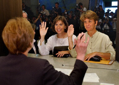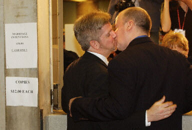 马萨诸塞州从17日起允许同性恋者在该州登记结婚。当日,马萨诸塞州市政厅迎来百对准备登记结婚的同性恋新人。