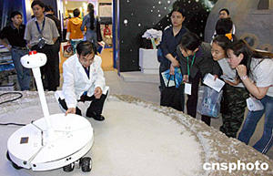 五月中旬,正在北京举行的“二零零四全国科技活动周暨北京科技周”上一款月球机器人首次亮相。这款机器人名叫“喀吗哆”,能跨越障碍并进行三百六十度观察和摄像记录。作者:徐曦弋