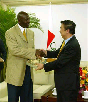 精明的乔丹还借机宣传一下自己的乔丹品牌:“我也希望通过中国之行推广我的乔丹运动系列品牌,当然,我也希望更多地了解北京和中国,这座古老的城市和文明古国。”