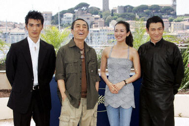 中新网5月20日电 法国戛纳当地时间5月18日下午2时,报道戛纳电影节的中国记者被请到马丁内斯饭店的露天酒吧,与参展影片《十面埋伏》导演张艺谋以及主演金城武、刘德华、章子怡见面,上海《新闻晨报》的特派记者也在其间。该报今日刊出了记者对张导及三位主演的完全访谈录,本网现将全文转载如下: