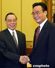中新社北京五月二十一日电 (记者 朱大强)中国全国人大常委会委员长吴邦国和全国政协主席贾庆林今天在此间分别会见了越南总理潘文凯。他们指出,双方要共同珍惜和精心维护友好关系,妥善处理存在的问题。