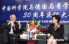 中国科学院与德国马普学会科学合作三十周年庆祝大会五月二十四日在北京举行,国务委员陈至立出席会议并会见了马普学会主席格卢斯教授。作者:徐曦弋