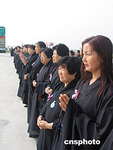 在仪式上,一诚法师、觉光法师、学诚法师分别拈香,诵经、跪拜。来自西安大慈恩寺六十多名僧侣仪仗队高奏佛乐,数百名佛家居士齐声念佛。