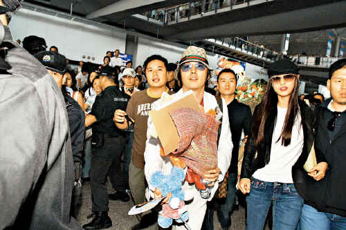 张赫戴上帽,身穿白衫白裤;全智贤则穿黑褛和牛仔裤,在昨午1时30分抵港,电影公司聘请了廿多位保安在机场护送两人,但当他们出闸时,热情Fans一拥而上,更突破了防线,令场面变得混乱。混乱中,张赫的Fans欲送鲜花给偶像,但却错手击中全智贤的头部,“中头奖”的全智贤用手摸头顶呼痛,之后一度黑口黑脸。