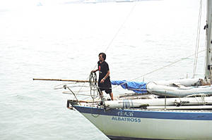 毕业于美国德州大学的翁以煊先生是一位计算机专家,自1998年开始,他只身驾驶被命名为“信天翁”的单桅帆船开始环球航海之旅,至今已走过了三大洋、四大洲,行程三万多海哩,也是单人环球航海穿越南大洋五大角的第一位华人。