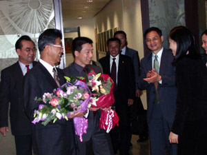 中国常驻维也纳代表张炎大使和中国驻奥地利大使卢永华等前往机场迎接杨利伟等中国航天英雄。