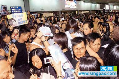 F3在大约6时抵达,而朱孝天有工作在身稍后才到港。现场所见仔仔带上口罩,带病出席盛会。五百多Fans一见偶像立即蜂拥而上,保安由六人增至60人,Fans争相上前握手和送花,场面一片混乱,更弄破一名摄影记者的镜头。期间吴建豪在人海中被人拍中头部,使他十分愕然,在旁的暴龙加以安慰。F3离开机场后,Fans立即变成追踪队,在公路上追车时险象环生。此外,蔡依林昨晚在百忙中抽空到Dior扫贷,尽显购物狂本色。