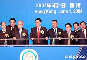 香港特区行政长官董建华、广东省委书记张德江、泛珠三角九个省、以及香港和澳门特区领导人主持开幕仪式。作者:洪少葵