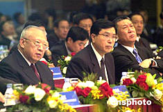 “泛珠江三角洲区域合作与发展论坛”二日移师澳门旅游塔会展中心举行,中共中央政治局委员、广东省委书记张德江、香港特区行政长官董建华、澳门特区行政长官何厚铧等出席论坛。作者:梁永强
