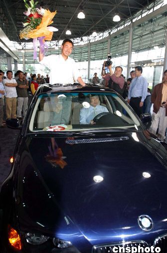 随后,刘亮交纳了3000元公证费,西安市新城区公证处向刘亮送达了公证书,并由新城区中山门地税所向刘亮依法办理了纳税手续。接着,西安市体彩中心负责人将宝马车钥匙交到刘亮手中。