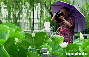 第四届澳门荷花节,六日在(左乙右水)仔花城公园揭幕,数十个品种的荷花在争相怒放,吸引了不少摄影发烧友冒雨采风。作者:梁永强