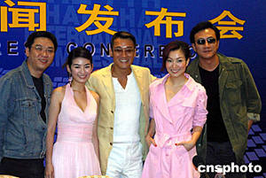 上海电影集团在上海国际电影节上推出体现上海特色、能够产生海外影响的优秀影视作品。六月六日,由内地和香港优秀演员携手合作的影片《长恨歌》的主创人员导演关锦鹏、黄奕、梁家辉、郑秀文、胡军(左起)集体亮相记者会。作者:潘索菲