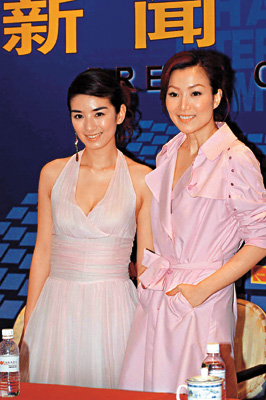 中新网6月7日电 关锦鹏导演的《长恨歌》,昨日在上海举行记者会,众演员包括郑秀文(Sammi)、梁家辉、胡军及黄奕均有出席,唯独吴彦祖未能赶到。据香港媒体报道,穿低V上衣的Sammi,仍被性感低胸的黄奕抢尽镜头,在场内地传媒更要求两人合照“对比身材”,令Sammi尴尬非常。