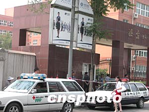 上午九时,一辆警车载着一名被堵在路上的考生朝北京四中的方向呼啸而至。在高考期间遇到堵车可以拨打一一0、一二0等号码让不少路途遥远的考生吃下了定心丸。