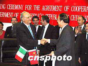中新网北京6月8日电(记者孙自法)中国国家知识产权局局长王景川和来华访问的意大利生产活动部部长安东尼奥·马尔扎诺分别代表两国政府,八日在此间签订《中华人民共和国政府与意大利共和国政府知识产权合作协定》。