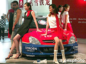 二○○四年北京国际汽车展览会将于六月十日至十六日在北京国际展览中心和农展馆举行,与会汽车厂商精心布展,车模小姐提前上台亲近香车。此次展会将有来自全球二十多个国家和地区的一千四百多家汽车厂商参加,比上届北京国际车展增加了六百多家。据悉,此次展会是国内车展历史上参展品牌最全的一次。中新社记者:满会乔