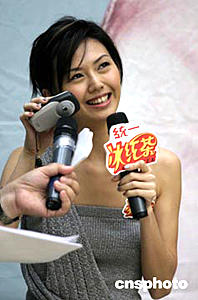 六月九日,小天后孙燕姿在北京出席个人演唱会新闻发布会时,现场给幸运歌迷打电话。作者:高远
