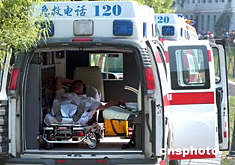 六月九日,十辆急救车在北京大安山煤矿出事矿井附近待命,已等候一天一夜的医务人员在车上小憩。六月六日,位于北京郊区的大安山煤矿发生坍塌事故,十名矿工被困井下。原先估计九日上午即可打通营救巷道,找到被困矿工,但井下地质状况十分复杂,截至九日下午六时,巷道尚未打通,估计还有三米的距离。中新社记者:张炜
