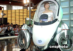 六月十日,二零零四北京国际车展在北京中国国际展览中心正式开幕,日本丰田公司展示一款驾驶舱可以升降的新型概念车。:武仲林