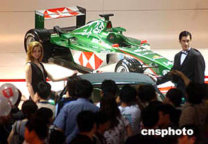 六月十日,二零零四北京国际车展在北京中国国际展览中心正式开幕,由于中国将于年内举办F1赛事,一些外国厂商纷纷推出自己的方程式赛车吸引中国观众。中新社记者:武仲林