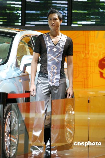 6月10日,在北京国际展览中心和农展馆同时举行的2004年北京国际汽车展览会规模超过历届车展会,各参展商力邀模特助阵,以博观众青睐,为车展助兴的男模也成为一道风景线。作者:鲁谷