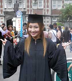 中新网6月14日电 据新加坡联合早报报道,台湾当红组合S·H·E的Selina任家萱从台湾师范大学“公民教育与活动领导学系”顺利毕业,她在毕业典礼上还率领全体同学一起唱校歌。