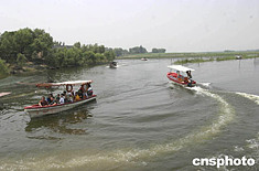 二零零四年春夏以来,素有“华北明珠”之称的河北白洋淀不断引外水扩大水势,发展水上旅游。中新社记者:史利