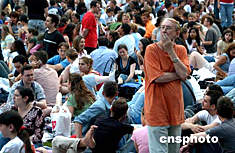 美东时间六月十四日晚,美国戏院和制作人联合会给纽约人奉上一台免费的百老汇“大餐”——七十五分钟的《星光下的百老汇》歌舞晚会。演出开始前,已有一万多人到纽约中城的布莱恩特公园“占座享受轻松时刻。作者:陈建